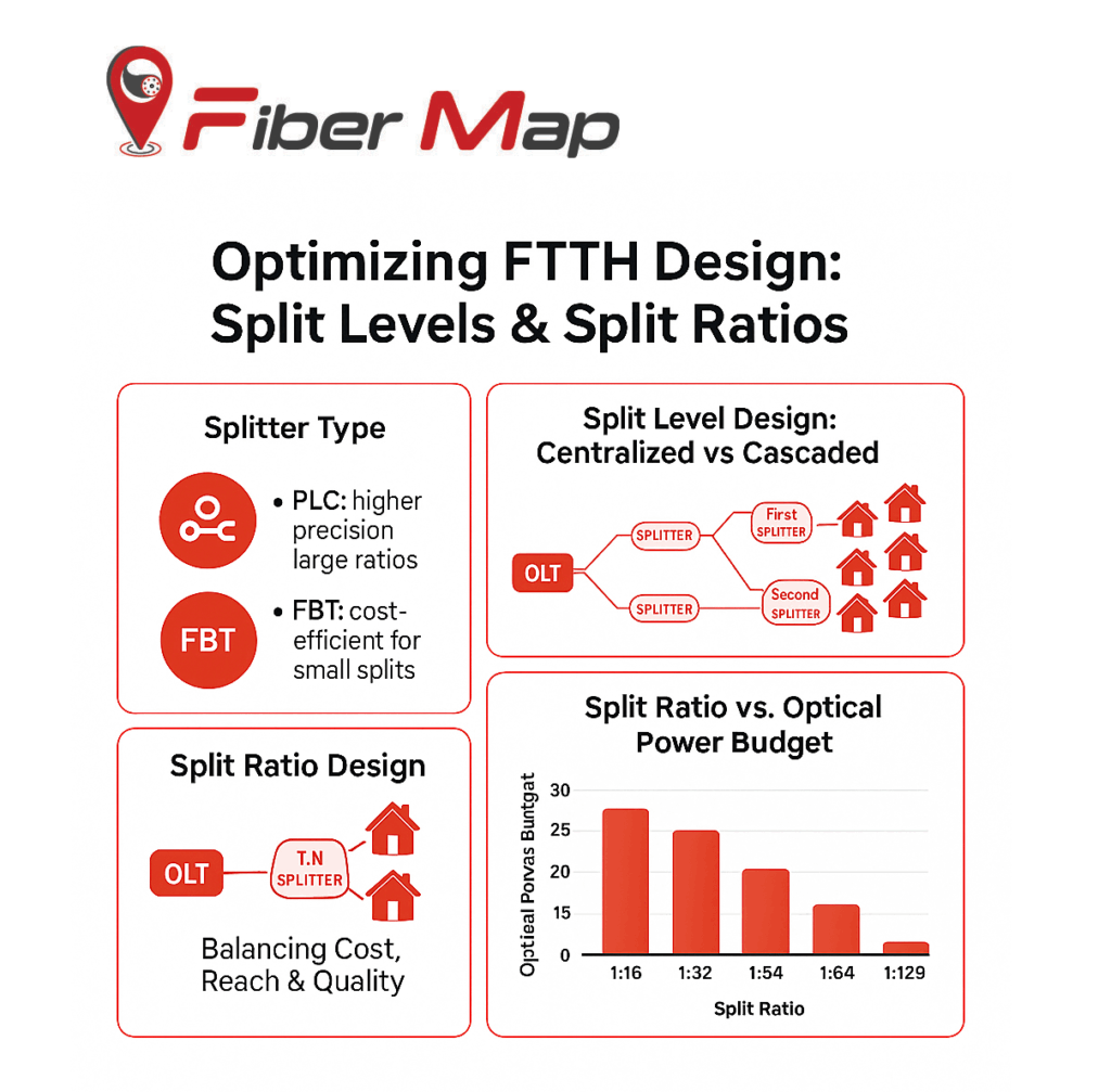 Designing FTTH isn’t just “drop fiber to homes and done”. You’ve got to strategically choose how many you split (split ratio), and where you split (split level), in tandem with understanding your geography, subscriber density, fiber budget, and future growth. A thoughtful design means better cost efficiency, easier maintenance, and higher reliability.